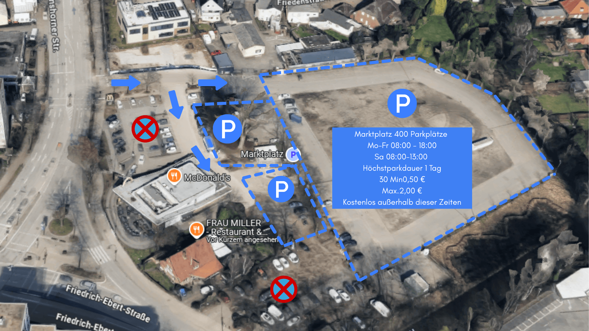 Parken: Hinter dem Restaurant, auf dem Pinneberger Marktplatz befinden sich ca. 400 Parkplätze Mit ÖPNV: Zwei Bushaltestellen (Bismarckstraße & Pinneberg Hochbrücke) befindet sich in unmittelbarer Nähe.